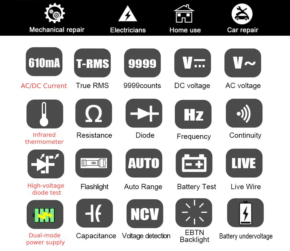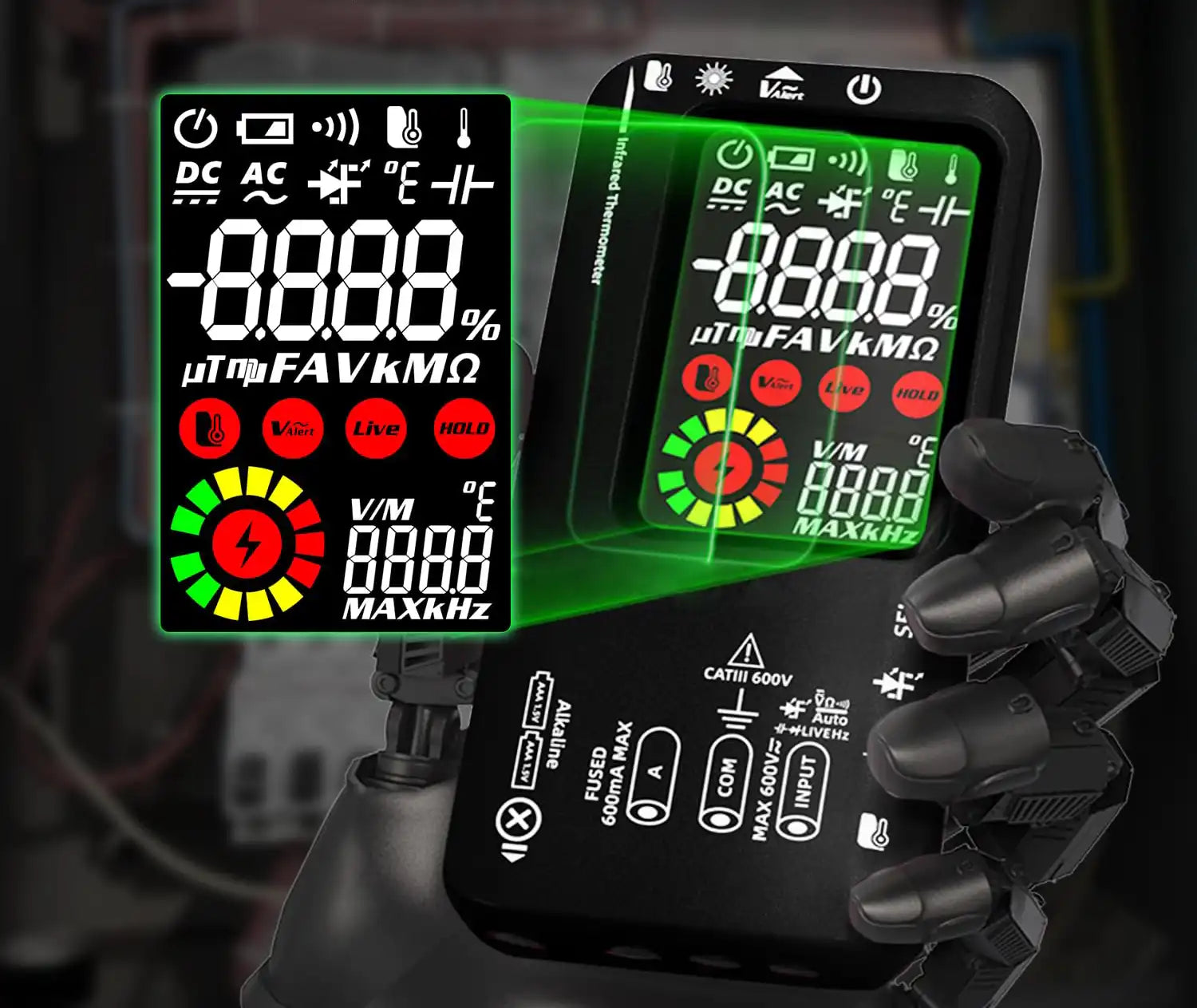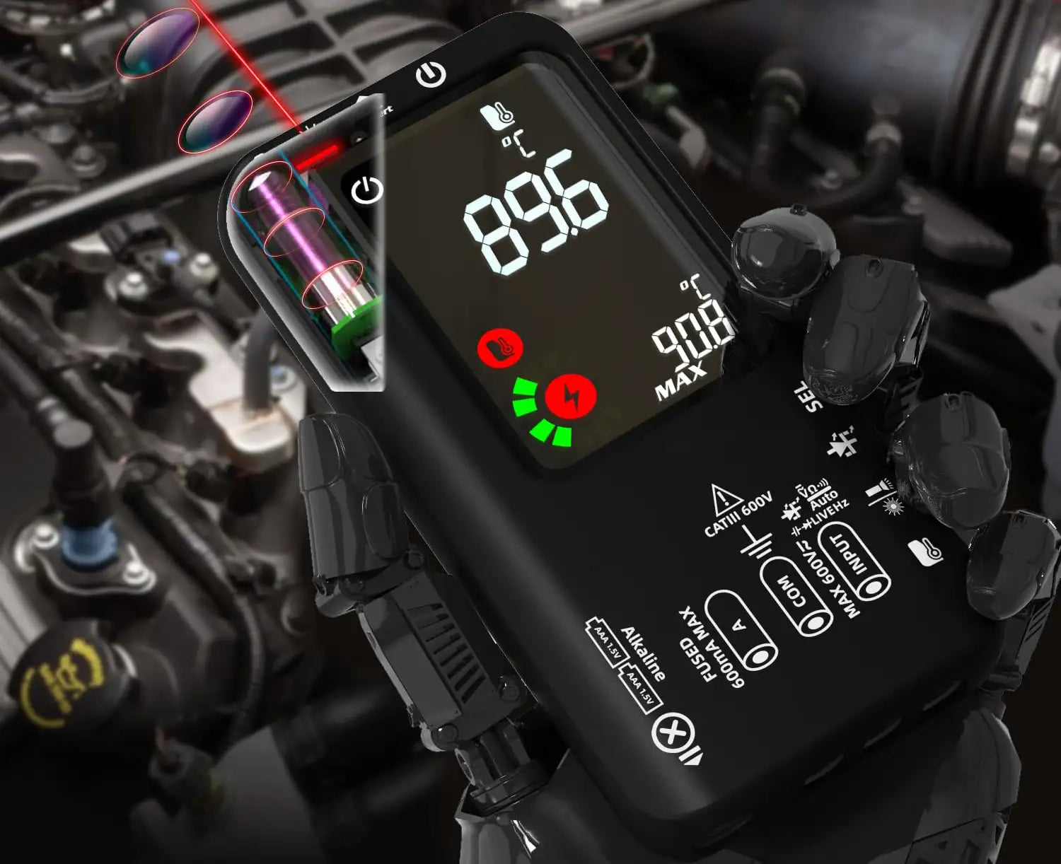 The Smart Multimeter V2 does more than just measure electrical parameters – it's also an infrared temperature gun. Displaying both real-time and maximum temperatures simultaneously, this feature is enhanced by a laser pointer for precise target identification.